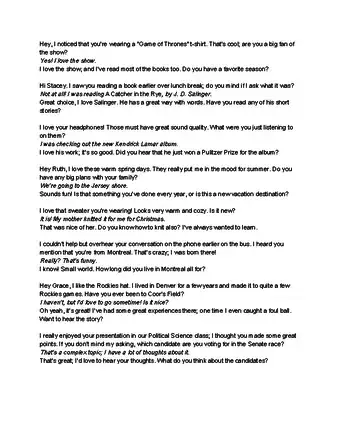 - She doesn't have to know everything about you by the end of your ten or fifteen minute conversation. But she should walk away with at least one or two interesting facts about you. If you were just making small talk the whole time, then it would be hard to get to know each other on a real level.