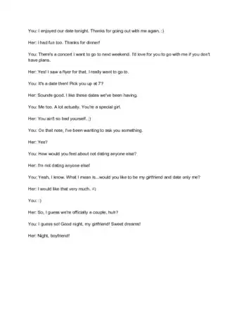 - Her day-to-day life. "Hows it going?" "How was your day?" and "Do anything fun over the weekend?" are all normal texts.