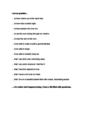 • Suggest that they think or say something like, “I am so fortunate to have people who love me, that I’ve slept in a warm bed, and that I didn’t go to bed hungry. No matter what happens today, my life is filled with goodness.”