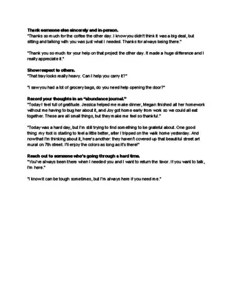 • Tell them, “Gratitude can help you notice the good things in your life, but that doesn't mean you should overlook the bad. You can also appreciate the lessons you learned from hardships or the people that helped you overcome them.”