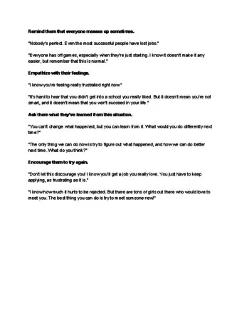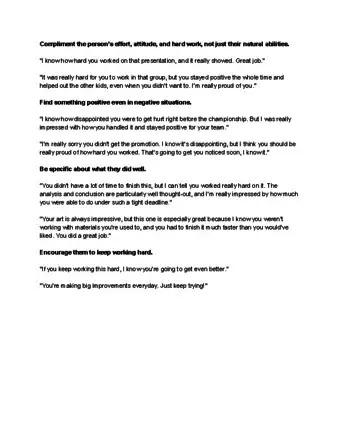 - For example, if they had a rough game, don’t say, “You did great!” Instead, say, “I know that wasn’t your best game and that you’re upset. I’m proud that you didn’t give up, and I know you can bounce back.”