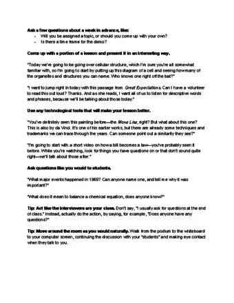 - Your committee wants to see what you will really be like in the classroom, so be prepared for a bit of roleplay. Use technology or any other interactive learning components you normally use. Don’t say, “I usually do this.” Instead, show them. Just be sure to check and make sure that the tools you need, such as a computer or models, will be available for your demo.