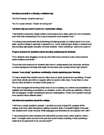 - For your committee interview, be prepared to give clear, concise answers about your experience and why you want to teach at a community college.