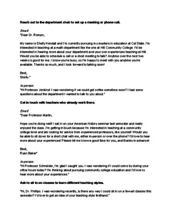 - If you don't have time to observe classes, think about other ways you can make connections. Offer internships for community college students at your workplace, for example. This allows you to coordinate with your department and network before you apply for a job.