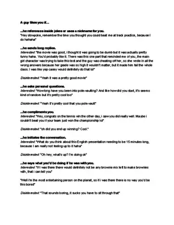 1Take note if he wants to know everything about you. If a guy asks a lot of questions about your personal life, it means he isn’t content with chit chat and wants to get to know you on a deeper level. This may simply be a sign that he sees you as a close friend, but it could also mean that he’s interested in something more.