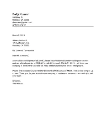 - For example, a cancellation clause might say that anyone involved in the contract can write to the others involved in the contract and formally cancel the contract. This can be a pre-made form or simple letter stating that you are rescinding the contract. This is only valid after they allow 30 days to pass from the time they wrote the letter of cancellation.[9]