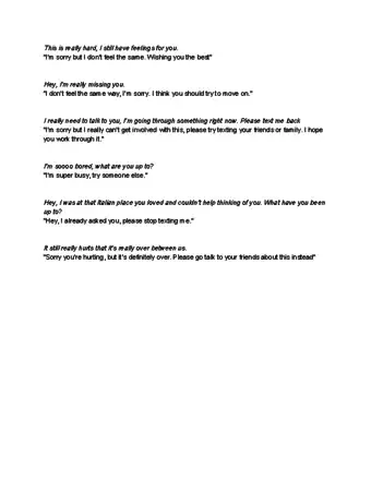 - If you know you do not want to talk to them you could say, “If you continue texting me, I will not reply.”