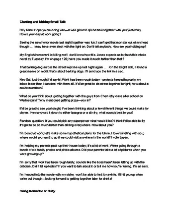 - If she asks, "What's up?" don't say, "Nothing" or "Just chilling." Be specific and give her the light-hearted details: "Helping my dad comb through ten years of strange auto-parts in the garage. We are the automotive Indiana Jones of the block. You?"