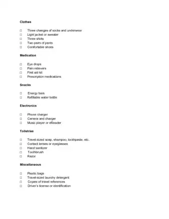 - Extra space: You may benefit from leaving a little room for extra items, such as souvenirs and purchases. Pliable bags, such as duffels, are a good choice for this: they can be cinched down when less than full, and expanded when you want to take advantage of the extra room.