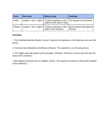 Try to use active sentences in most other circumstances. In most cases, an active verb makes a sentence more forceful and easier to follow. When you write a passive sentence, stop and try to rewrite it as an active sentence. It's not always necessary, but it often forces you to improve your writing and think harder about what you're trying to say.[6] For example: