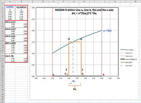 3Click in the far upper left top corner above the 1 of row 1 and to the left of column A. Doing so will select the entire worksheet. Format Cells Number Number to decimal places 2, show comma. Format Cells Alignment Center. # Title the first worksheet, "Rotate Function f(x)" and save the workbook as "Rotate Curves About An Axis" into an appropriate folder such as 'Microsoft Excel Imagery' or 'wikiHow Articles'.