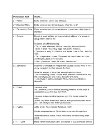 Punctuation Cheat Sheet