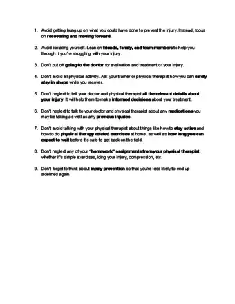 - Tell your therapist when and how the injury occurred, and describe any symptoms you are experiencing (such as pain, swelling, or stiffness).