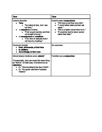 Indicate a correlation between 2 events with than. Than can also be used with past tense verbs and some adverbial expressions. Adverbial expressions are multi-word expressions that function to modify or qualify a verb. In these cases, than is being used to indicate that one thing correlated with another.[5]