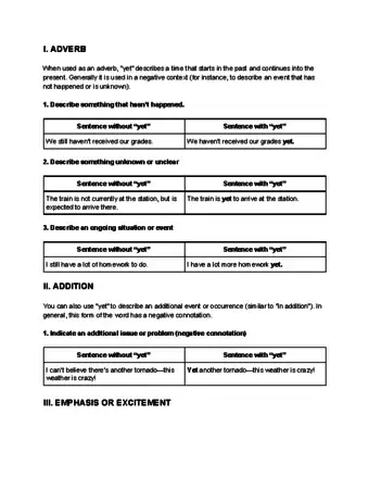 “Yet” is a useful word in the English language, as it allows you to be more clear in a sentence. “Yet” can be used as an adverb, to discuss an additional idea, or to emphasize a feeling or thought. It can also be used as a conjunction, similar to how you might use conjunctions like “but” or “nevertheless.” With the right placement and punctuation, you can use “yet” with confidence when you write or speak.