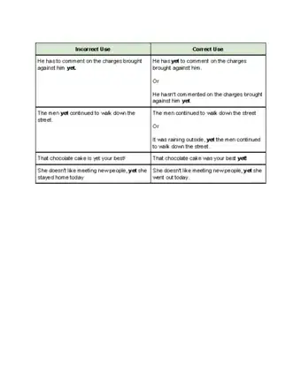 • For example, you may say, “The new tenants complained about the noise, yet they continue to play their music loud,” or, “She dislikes meeting new people, yet she still showed up at the party.”