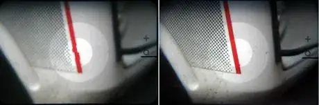 - The split-image in the centre. This will cause straight vertical lines to appear split in half if they are out of focus, and they will rejoin when they are in focus. Sometimes half of this image will be blacked out, for example with slow lenses (f/4 and slower).