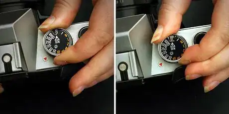 9Set the film speed on the film speed dial. The film speed dial is in the same place as the shutter speed dial; it's the silver dial around the outside, which can move independently.To change the film speed, pull the silver ring around the shutter speed dial upwards. While holding it there, rotate the dial until you have set your desired film speed.Notice that the MTL3 has both DIN and ASA settings; modern films typically give their ratings in ASA (which is called ISO on digital cameras). (For example, Fuji Velvia 50 is ASA 50, not 50 ° DIN, the latter being equivalent to an ASA speed in the high five figures.Advertisement