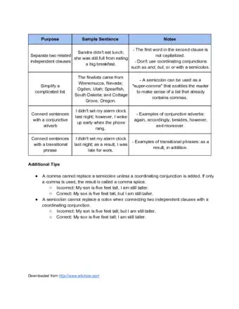 2Do not use a comma instead of a semi-colon. A comma can never be used to separate two independent clauses (complete sentences). This is called a comma splice and should be avoided at all times.