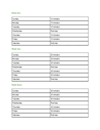 2Aim to walk for 21 minutes per day. If you prefer to have a few days off during any given week, that’s fine too. Just aim to walk a total of around 2.5 hours per week.