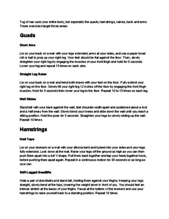 4Position someone with good endurance at the back of the team. Choose someone with good lower body strength and put them at the end of the rope so they can “anchor” the team. Make sure they're strong enough to continually pull the team back while maintaining a tight grip on the rope.