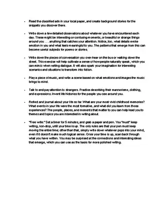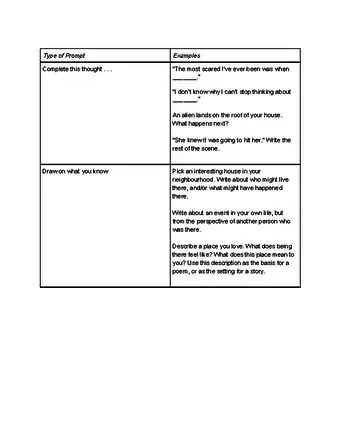 - Look online at collections of "free writing prompts." There are thousands of ideas out there to spark your creative juices and get the writing flowing, even if only for a few minutes.