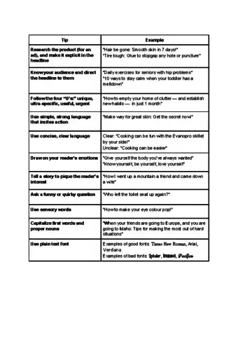 - For example, if you're writing a headline for an advertisement about scar removal cream, consider describing in your headline how the cream removes people's “unsightly blemishes” and leaves them feeling more confident as a result.
