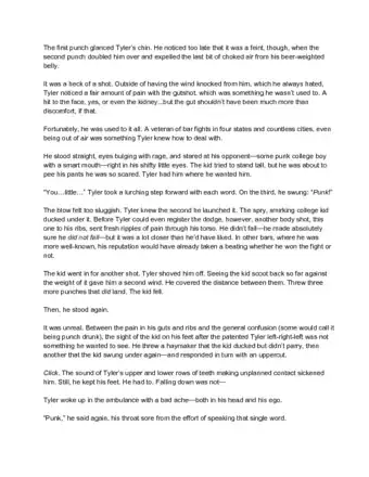 - A fight scene should always advance the plot of the story or reveal character. It should provide crucial information to the reader about the characters involved in the fight.