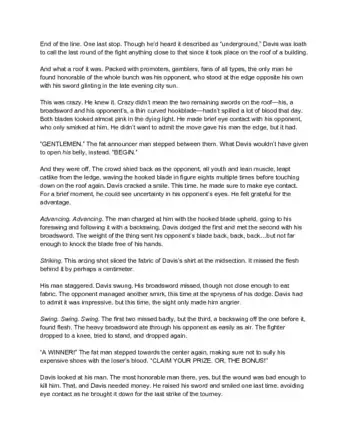- Consider how the writer builds up to the fight scene and how the weapons and fighting styles of the characters matches the tone and setting of the rest of the book.