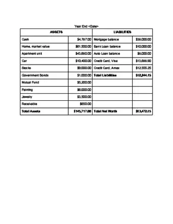 - For regularity, you may choose to do a balance sheet at the end of the calendar year or twice per year at a set date. This will allow you to follow your net worth growth year-by-year.[2]