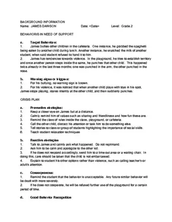 - At school, the child will be assigned a case manager, and the school team and parents may convene for a meeting to develop an Individualized Education Program (IEP) to help support the child's behavior in the school setting.