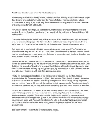- It should be noted, however, that you do not have to endorse a particular solution. You can also just lay out some options with their pros and cons, and simply urge the reader to consider these choices and take action of some kind to address the issue. You don't necessarily specify which action would be most appropriate.