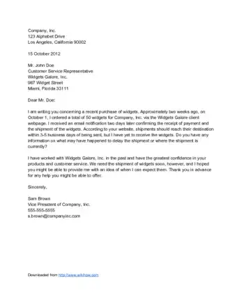 - It is best to address the letter to a specific person. This way, an actual person will be able to respond to your letter. If you don’t know the name of the person to whom you should send the letter, do a bit of research. Call the company to find out the person’s name and title.[4]