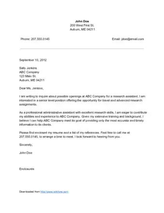 6Include a positive statement or question in the final paragraph that will motivate the employer to contact you. Make this closing paragraphbetween two and four sentences.Direct the employer to your enclosed resume and make sure you specify that you're available for an interview. Finish off by thanking the recruiter for their time and consideration, and welcome them to get in touch with you to continue the conversation.EXPERT TIPEmily Silva Hockstra is a Certified Life Coach and Career Coach with over 10 years of coaching and management experience with various corporations. She specializes in career transitions, leadership development, and relationship management. Emily is also the author of "Moonlight Gratitude" and "Find Your Glow, Feed Your Soul: A Guide for Cultivating a Vibrant Life of Peace & Purpose." She received her Spiritual Life Coaching certification from the Life Purpose Institute and a Reiki I Practitioner certification from Integrative Bodywork. She has a BA in History from California State University, Chico.Career & Life Coach