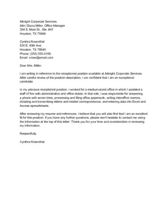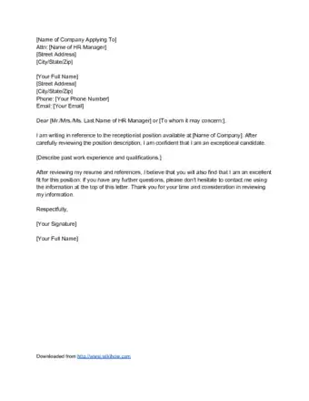 - ↑ https://administration.myperfectcoverletter.com/receptionist-cover-letter-sample/