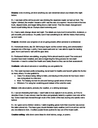 - Sometimes, these bullet points might provide content for a longer entry you write at some later time. Even if not, it's better to just jot down a few notes than to skip a day.