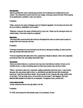 - ↑ http://resources.yourtribute.com/funeral-eulogies/how-to-write-a-eulogy-for-a-mother/