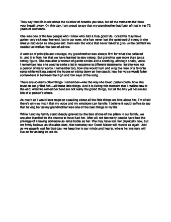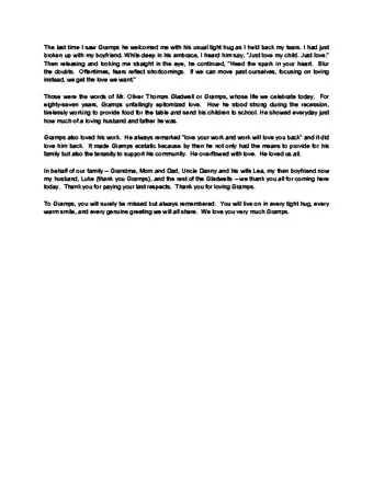 - Consider having someone else read your eulogy beforehand and ask them if there's too much of you in it. Having an outsider's opinion may help you recognize ways to focus more on your grandparent and your relationship than on your subjective feelings.