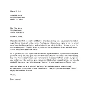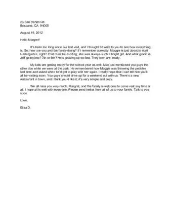 - You can use the first paragraph to inquire more deeply about the recipient's life. For example, "I hope little Julie has been enjoying kindergarten. I can't believe she's gotten so big!"