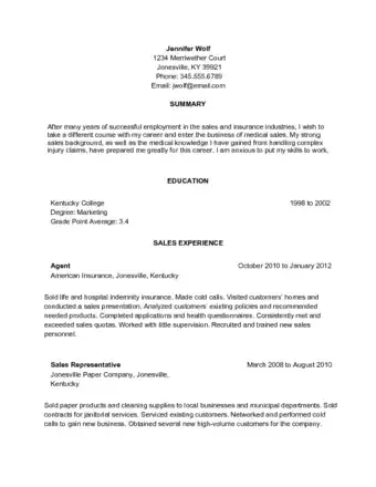 Instead of writing the word "Summary" at the top of your resume, create a 3-5 word descriptor that summarizes your skills—for example, "Seasoned Public Affairs Executive." Then, list 2-3 examples of your most relevant achievements and responsibilities, either in a paragraph or a bulleted list. Be sure to include a few keywords from the job description in this section of your functional resume. -