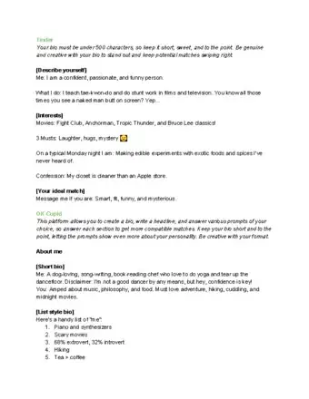 Your online profile helps potential matches decide whether they want a date with you, so it's important to write something that will really catch their attention. Read on for tips on how to create a bio that's creative, fun, unique, and totally you!
