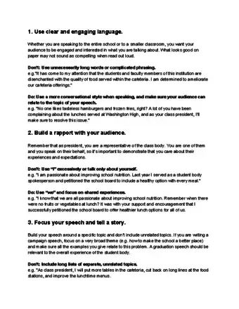 QuestionWhat should be included in a class president's speech?