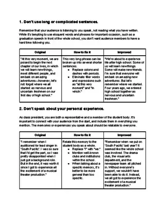 - To help you find a more serious tone, imagine that you're giving your speech to your teachers rather than your classmates.