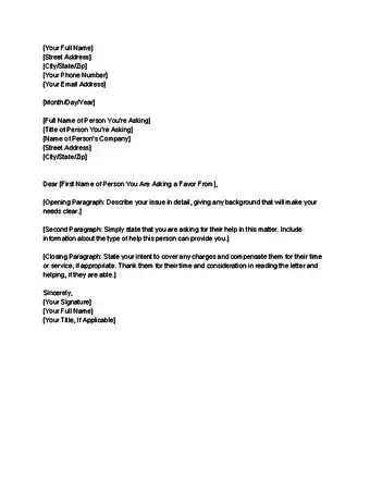 5Tell your recipient why the favor is important. In certain cases, you might need to convince the recipient that he or she should grant your request. This should also go in the second paragraph. Have all your supporting evidence ready and briefly state why this request is important, and why granting it would help the recipient.[8]