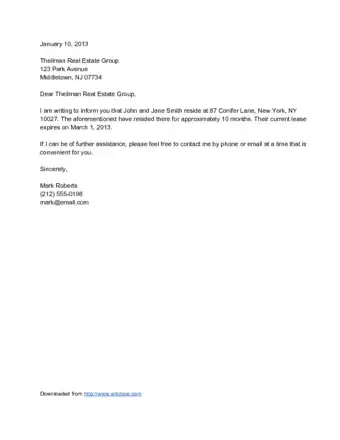 - For example, you can write, “I am writing to confirm that Mr. Richard Alley currently lives as a tenant on my property located at 1234 End of the Road, Jonesport, Maine 04649.”