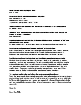 - Do not send your letter directly to the judge. Defense attorneys prefer that their clients’ friends and relatives send the letter to the attorney first so that the attorney can read over the letter and confirm that there is no information in the letter that may be detrimental to the defendant’s case.[15]Thanks!