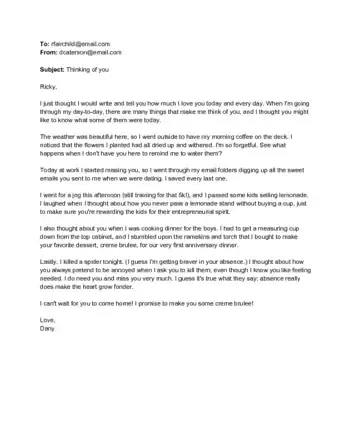 - Good tactic: If you can't think of anything good, scan through the email and look for a funny bit of language that you can use to slap in the title window. It'll seem charming, and funny when your partner gets to that patch of the letter.