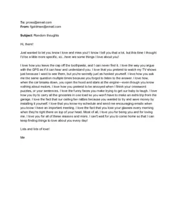 - Easiest, best, and most effective thing to put into a love email: "I can't stop thinking about you."