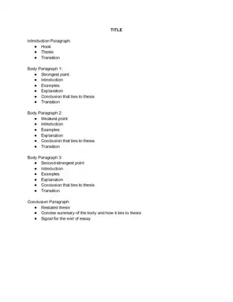 6Outline your argument. After brainstorming, spend about half an hour outlining your paper. Do this in bullet points. Don’t bother writing full sentences unless you think you have extra time. Your outline should include a few ideas for your introduction, three body paragraphs, and a conclusion.[6]Advertisement