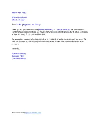 1Compliment the candidate. If you have a genuine compliment for the applicant, then you may want to include it in the rejection letter. This can help to encourage the applicant in his or her job search even more. Just make sure that the compliment is sincere.[3]